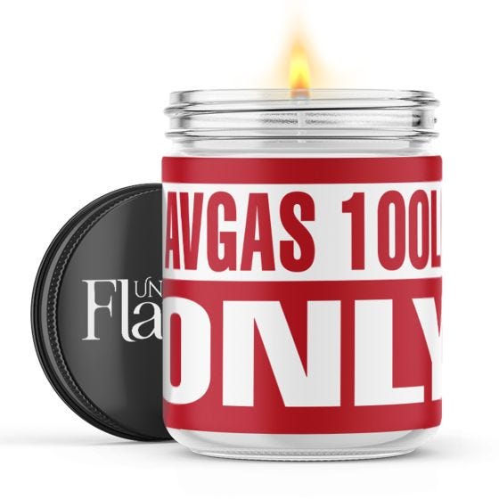 AvGas Scent: Our most potent scent yet, AvGas combines the perfect mix of burnt rubber, oil, and AvGas on the runway!