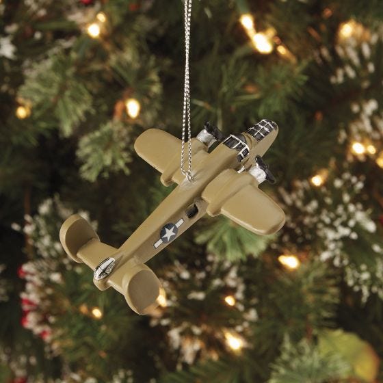 Modeled after a B-25 Bomber used during WWII, this custom-made Christmas Ornament is ready to land at your home this holiday season,