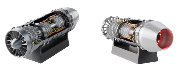 - Rotates to mimic real engine motion while the back of the engine glows red