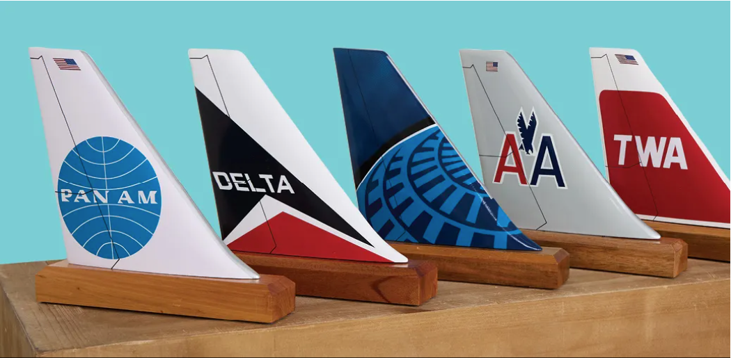 Hand-crafted from wood, our classic airlines logo tail displays feature timeless artowrk from top airliners from the air travel boom of 60s to modern logos of todays airliners. Shop our collection here