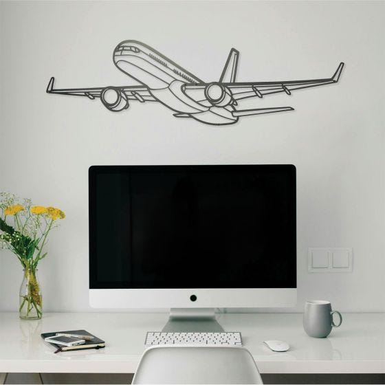 These elegant pieces capture the essence of aviation, featuring sleek lines and minimalist designs that bring a touch of sophistication to any space. Perfect for living rooms, offices, bedrooms, or any space that could use an aviation touch. Each silhouette is meticulously cut from high-quality metal, ensuring durability and a stunning finish. Detailed with precision-cut lines, these silhouettes create a striking visual impact. Easy to display, they’re lightweight and include a sawtooth hangar. Measures 32"w x 8.25"h.