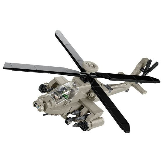 The famous Apache is a tactical U.S. Army attack helicopter intended to combat armored weapons and to support ground units in any battlefield. It was designed as a durable machine capable of operating in all weather conditions, regardless of the time of day or location. It has been continuously produced and modernized since the 1980s. Modern design and effective properties have made export versions of great interest to other countries all over the world. Block model replica features spinning rotors, landing gear, opening canopy, cockpit with two pilot figures, and display stand with printed nameplate. Includes 510 high-quality blocks with graphics that are pad-printed, not stickered, and a step-by-step instruction manual is provided for an easy building process. Measures 14.5”l with a 12” rotor span at 1:48 scale. Assembly required to complete the model. Recommended for ages 7+.