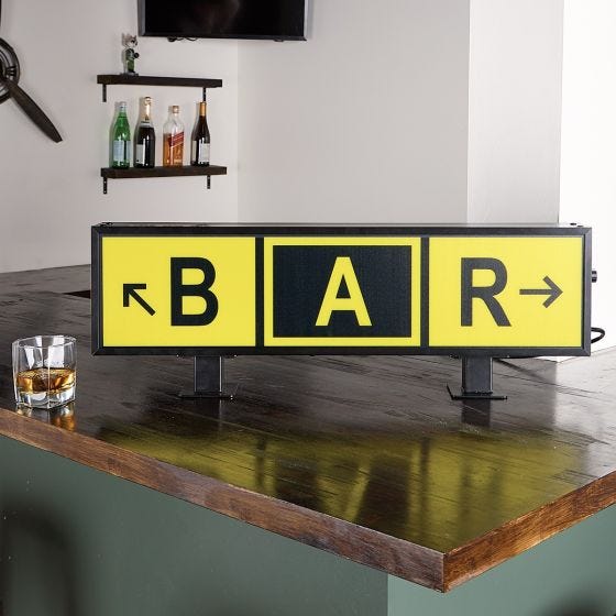 Bring authentic airfield style into your space with this custom metal Taxiway Light Decor, designed to echo the look of real-world airport signage. Crafted from durable metal, this striking piece adds a bold aviation accent whether displayed in your home, office, or hangar. The illuminated design features an adjustable brightness knob, allowing you to fine-tune the glow or turn the light off entirely for a clean, non-illuminated display. It can be shown freestanding using the attached display feet or mounted on the wall using the integrated keyhole hangers on the back. Power is supplied via the included power cord. What truly sets this piece apart is the customization. Choose three individual taxiway squares, with up to two characters per square, to create a personalized aviation message or identifier that’s uniquely yours. Taxiway light measures 28”l x 9.5”h x 3”d. This custom taxiway light is available exclusively online at AviationGifts.com. We’ll email you a digital mockup for approval before shipping. Please allow two weeks for delivery.