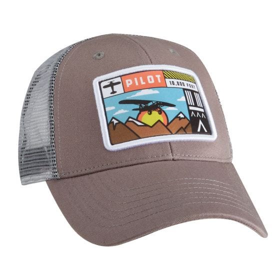 Whether you’re flying over the mountains at 10,000 feet or tackling them from the trail, this Adventure Hat is sure to keep you looking stylish for any adventure. The graphic features a classic taildragger flying over the mountains with airport markings. The hat features a snap-back closure, and the breathable mesh back keeps your head cool, while the buttonless design makes them an ideal fit for headsets in the cockpit.