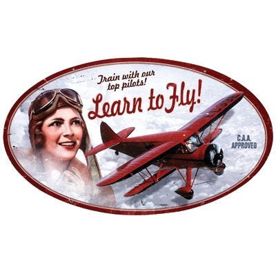 Learn To Fly Oval Metal Sign