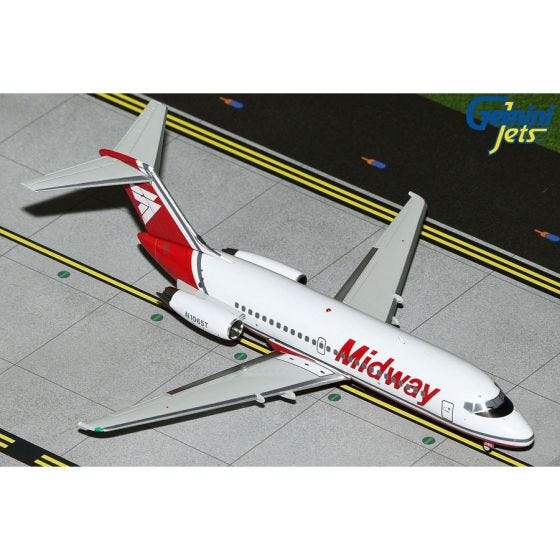 • Features etched panel lines, printed decals, and accurate paint scheme of Midway Airlines.