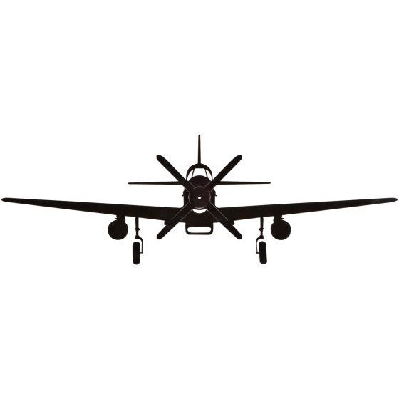 A very cool graphic in a great shape of a military aircraft laser cut from metal to replicate the front silhouette of the aircraft.