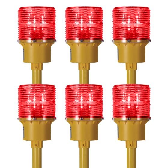 Available in red for runway thresholds, these lights automatically charge during the day and illuminate at night, creating a realistic and eye-catching airfield effect.