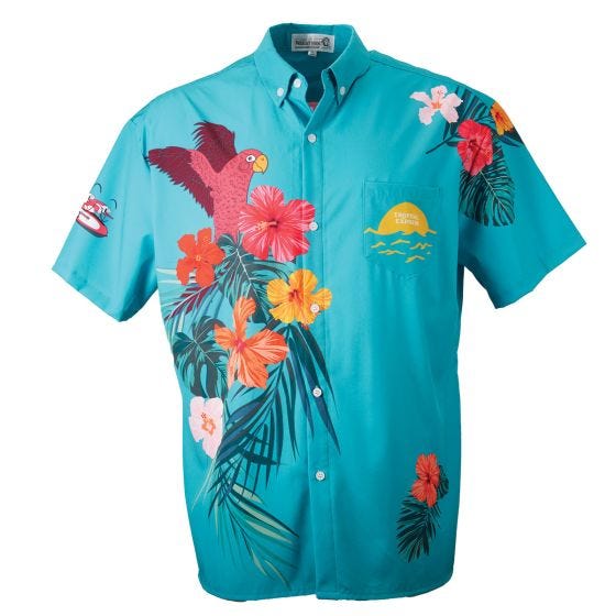 Where island vibes meet high-flying adventure. Exclusively designed for Sporty’s Aviation Gifts, this high-quality Shirt is made of four-sided stretched easy-care polyester fabric and features a button-down collar and left chest pocket. Sublimated designs features an abundant amount of colors on a tropical teal background. A flying boat appears across the back and on the right sleeve.